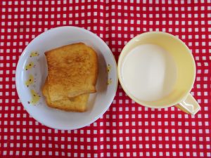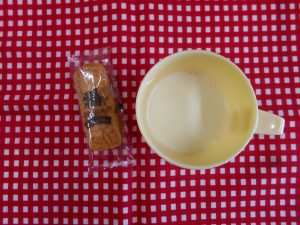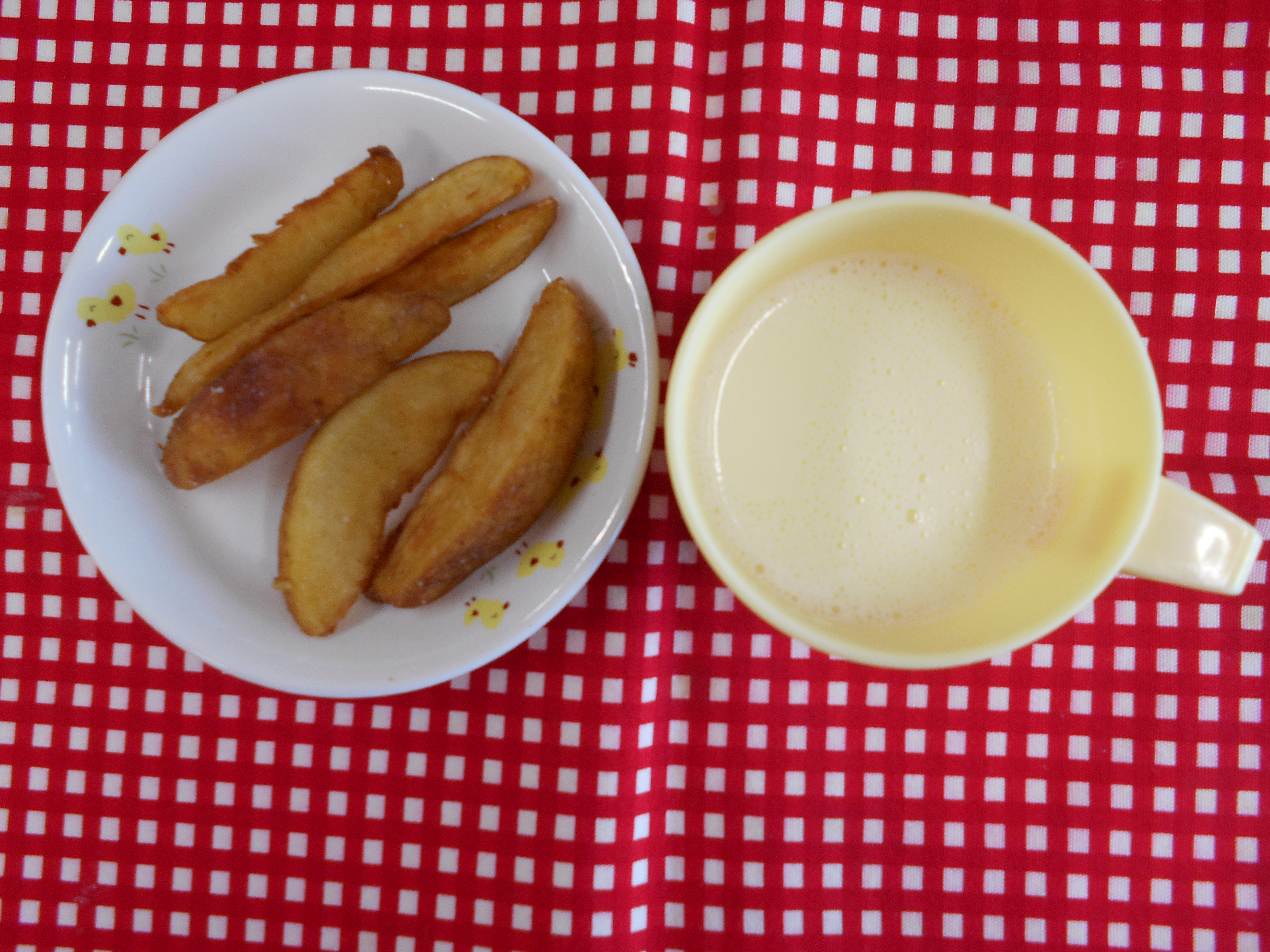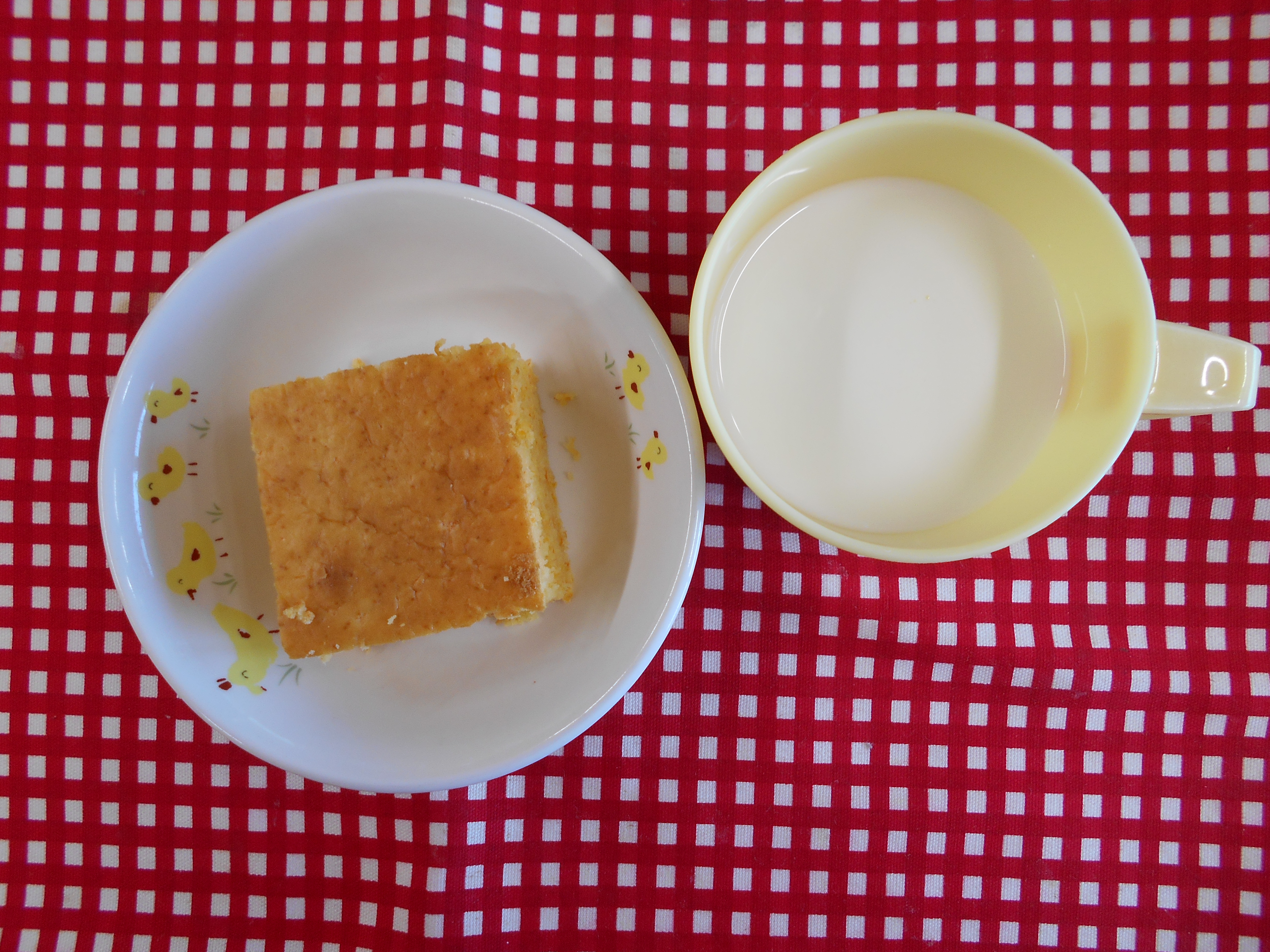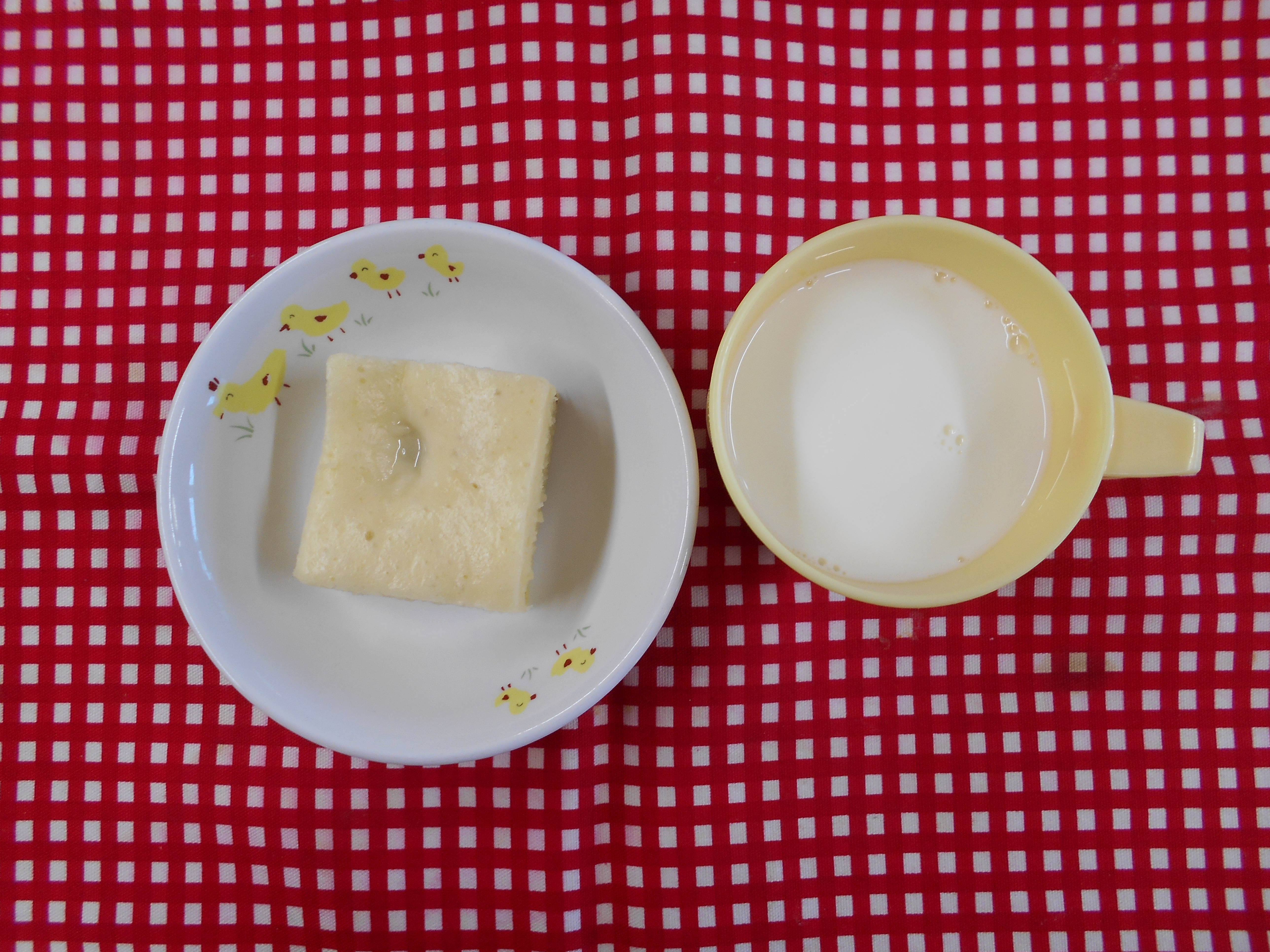 未満児さん10時のおやつ(牛乳、パイン缶)